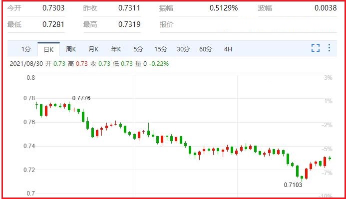话虽如此,由於美联储坚持基於结果的货币政策路径,因此笔者认为9月初出炉的美国重磅经济数据很可能只是对美元短期的前景带来影响,即便美联储官员显露更大的意愿转换引擎。汇价现报0.7294,跌幅0.26%。