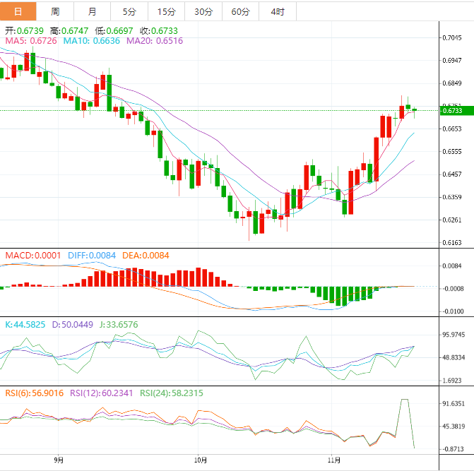 因此,预计在接下来的几个交易日中会看到更多下跌,除非该价格成功突破0.6767并守在该水平之上。