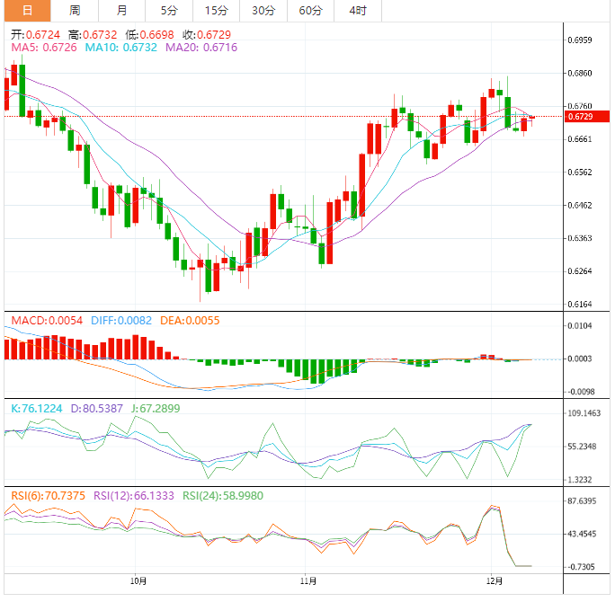 澳元技术面:澳元兑美元提供了暂时的积极交易,但它面临着EMA50形成的良好阻力,伴随着随机信号的明显负面信号,等待激励价格在即将到来的一段时间恢复预期的看跌趋势,其目标始于0.6650。另一方面,应该注意到,突破0.6767将停止负面情景,并导致价格在短期内恢复看涨浪潮。