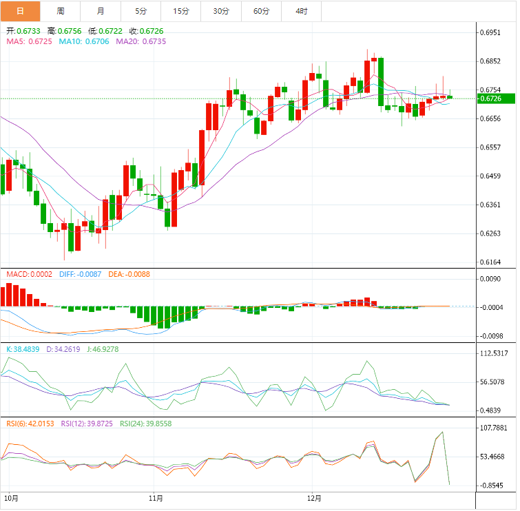 澳元技术面:澳元兑美元提供了积极的交易,以测试横盘区间的阻力线0.6767,并可能在接下来的几个交易日测试该区间的支撑位0.6650,以保持横盘轨道有效,直到价格设法突破其中一个水平并清楚地检测到下一个目标。注意,突破上述阻力位将推动价格实现从0.6905开始的涨幅,而突破支撑位将推动价格直接向0.6540前进。