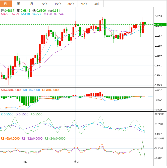 要想实现新的反弹,澳元资产需要在12月13日的高点0.6893上方实现决定性突破,这将推动澳元向8月30日的高点0.6956和心理阻力位0.7000前进。