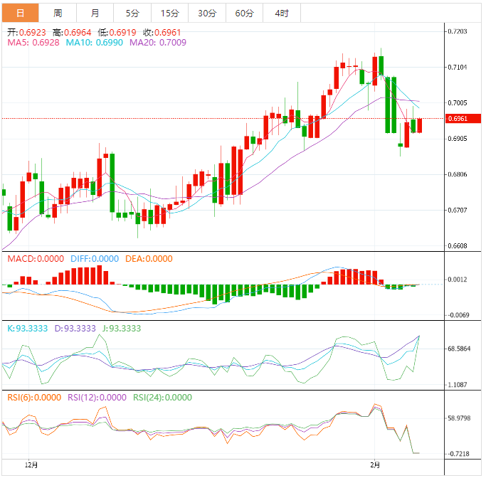 澳元技术面:澳元兑美元昨天未能成功确认阻力线,仍被限制在0.6925支撑位和0.6980阻力位所代表的趋势确认水平之间,注意到技术因素之间存在矛盾,这使中立直到现在仍然有效,等待突破上述水平之一。突破上述阻力位将导致价格回到主要的看涨趋势,并从0.7060开始获得收益,并延伸到0.7155,而突破支撑位代表负面因素,将推动价格实现额外的熊市修正,主要目标区域为0.6780。