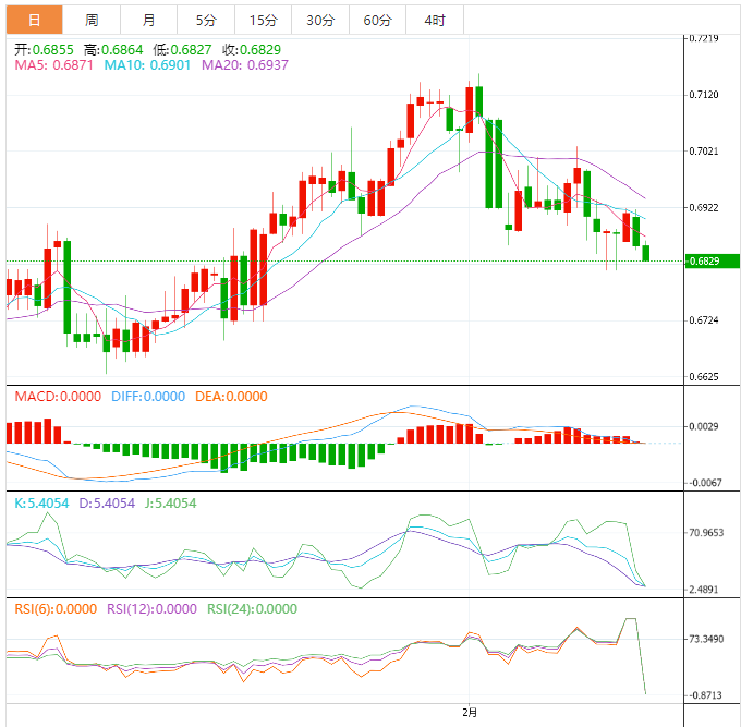 然而,上周五的一条向上倾斜的支撑线(截至发稿时接近0.6850)限制了澳元兑美元货币对的立即下行。