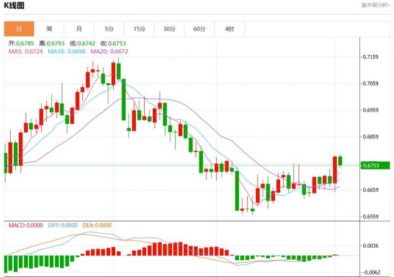 周二盘中,澳元美元报0.6756,跌幅0.46%。