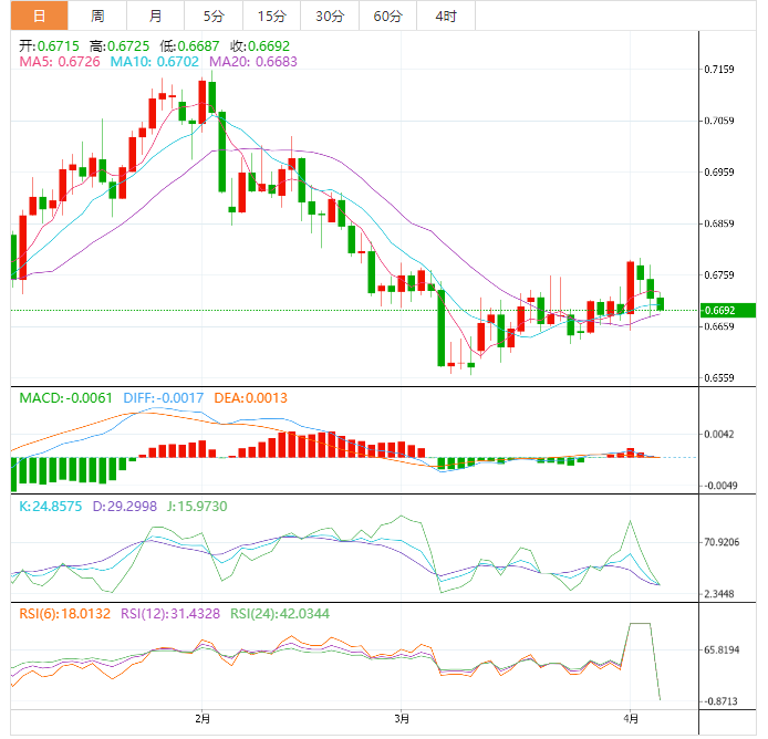 澳元技术面:澳元兑美元的跌势在0.6665附近停止,价格开始回升,试图恢复盘中的看涨行情,等待最初的0.6780水平。考虑到突破0.6665将停止预期上涨并迫使价格访问下一个修正水平0.6550,EMA50试图保护价格不遭受更多损失,以支持所建议的积极情景的延续。