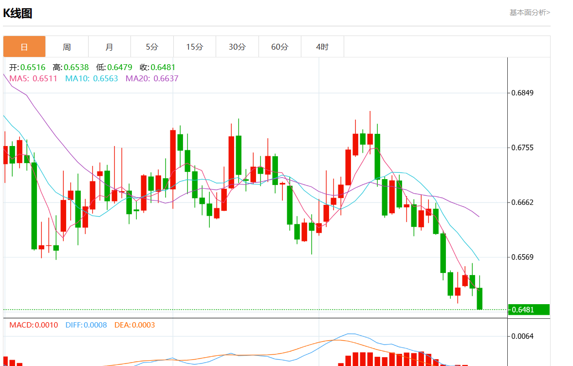 周三盘中,澳元/美元最新报0.6485,日图跌0.47%