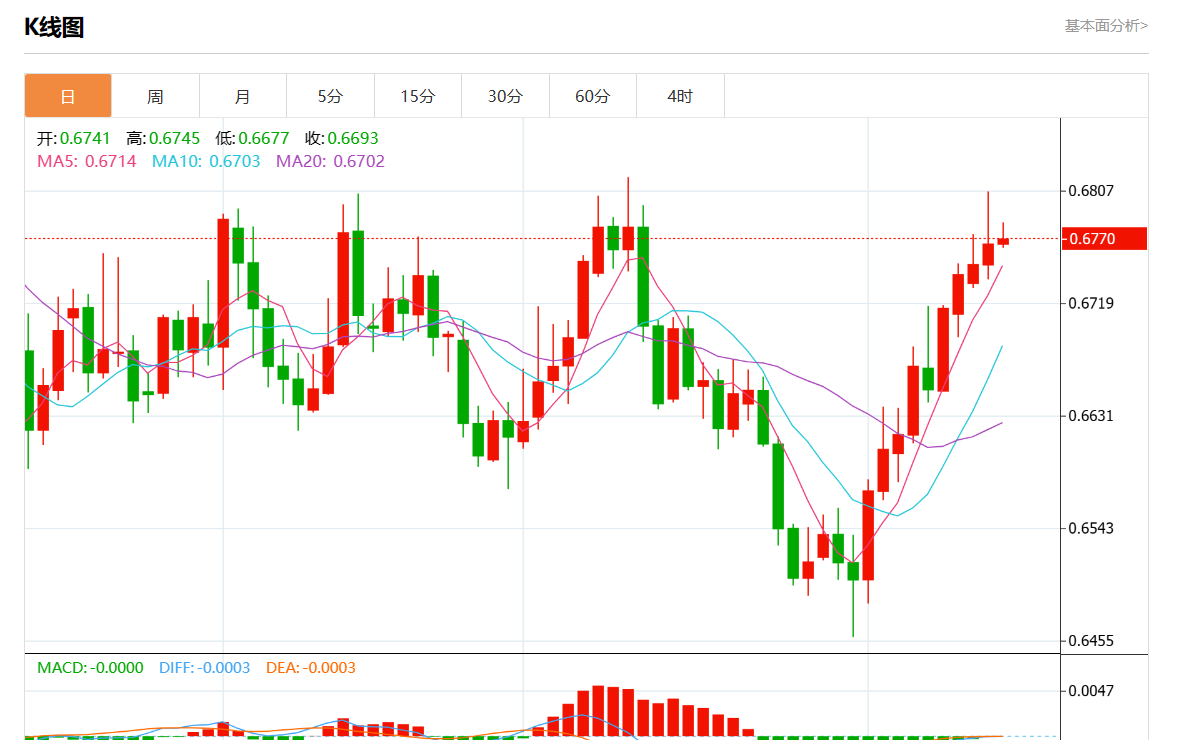 阻力位:0.6755 0.6735 0.6720