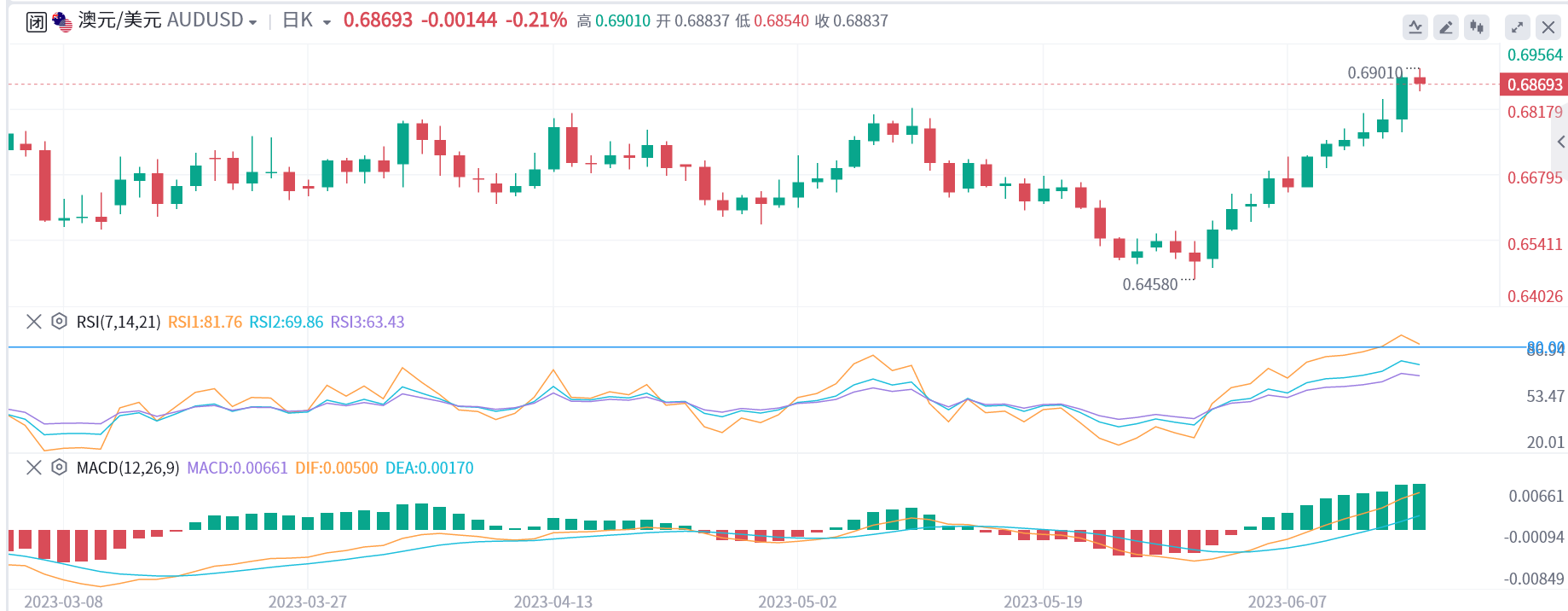 从更大的角度来看,从0.7156下跌可能会在0.6457的三浪修正结构中完成。该发展认为,从 0.6169(2022 年低点)上涨仍在进行中。0.7156 的坚挺突破也将增加从 0.8006(2021 年高点)开始的整体下跌趋势已经结束并转为中期前景看涨的情况。目前,只要 55 D EMA(目前为 0.6688)保持不变,即使在深度回调的情况下,这也将是有利的情况。