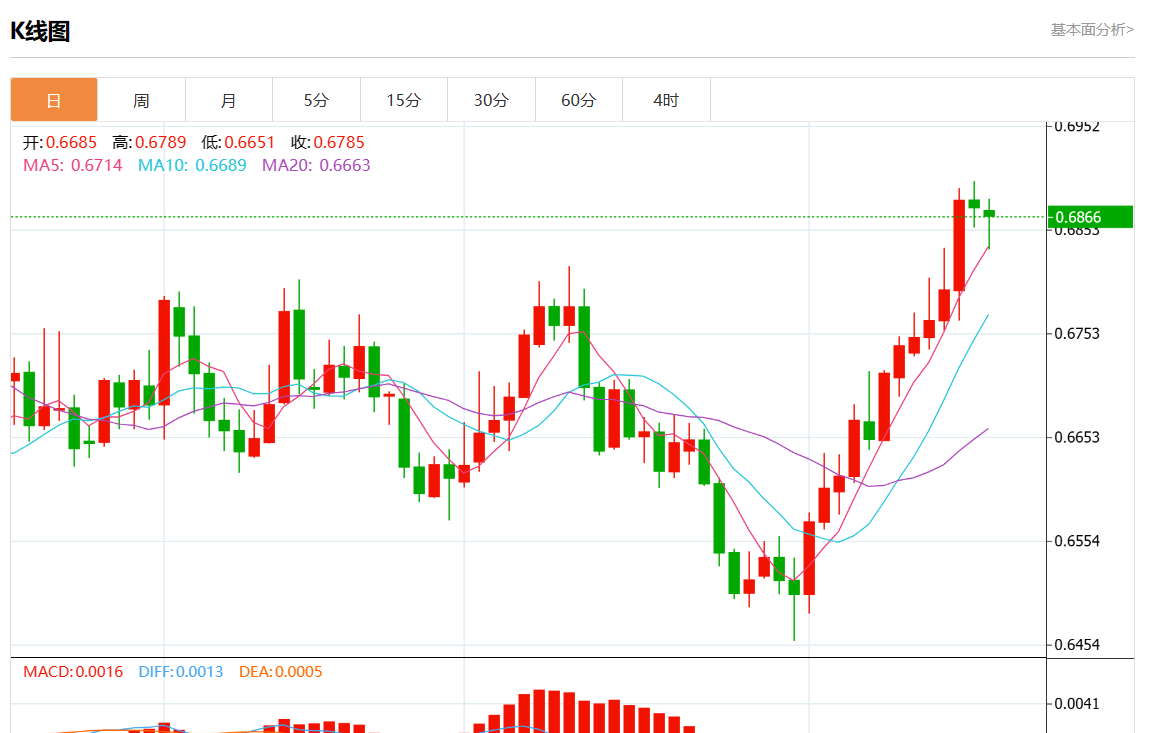 阻力位:0.6820 0.6800 0.6780