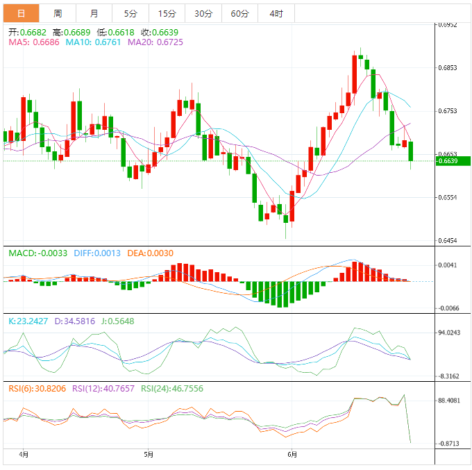澳元基本面:澳元/美元回落至澳大利亚通胀数据公佈后的三週低点,因为在欧洲央行(ECB)辛特拉论坛上关键央行行长的讲话之前,市场情绪仍然很不确定。尽管如此,在周三欧洲市场早盘,澳大利亚月度消费者价格指数(CPI)吸引空头后,澳元兑美元暴跌50点至0.6618,当日下跌0.75%至0.6635左右。