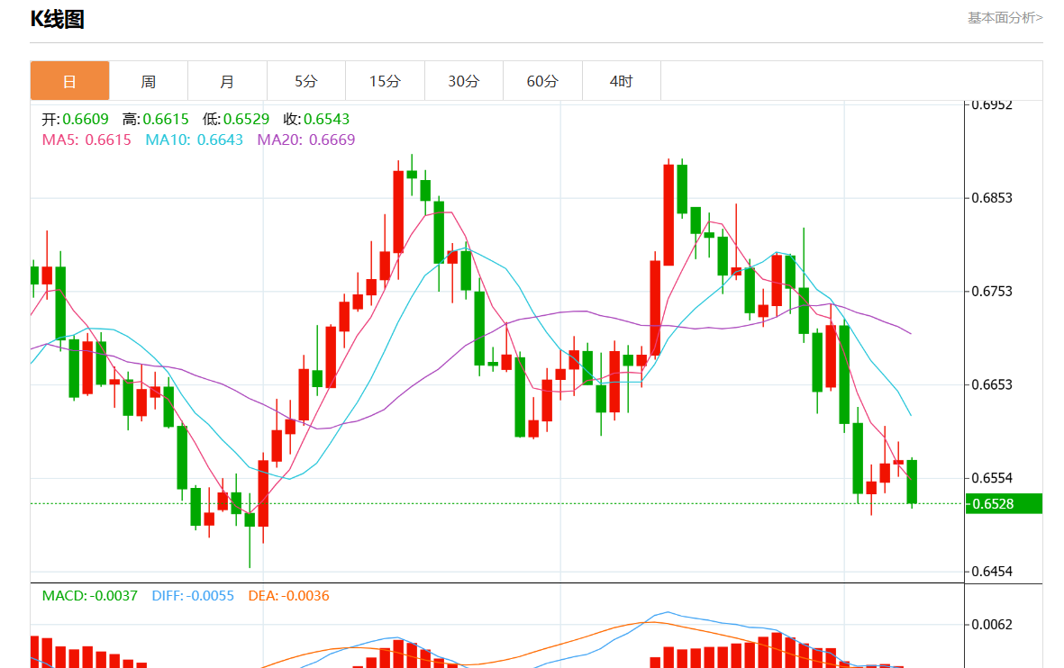 支撑位:0.6605 0.6585 0.6570