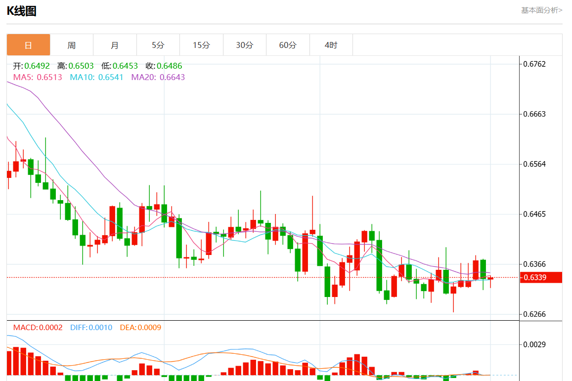 支撑位:0.6380 0.6365 0.6350