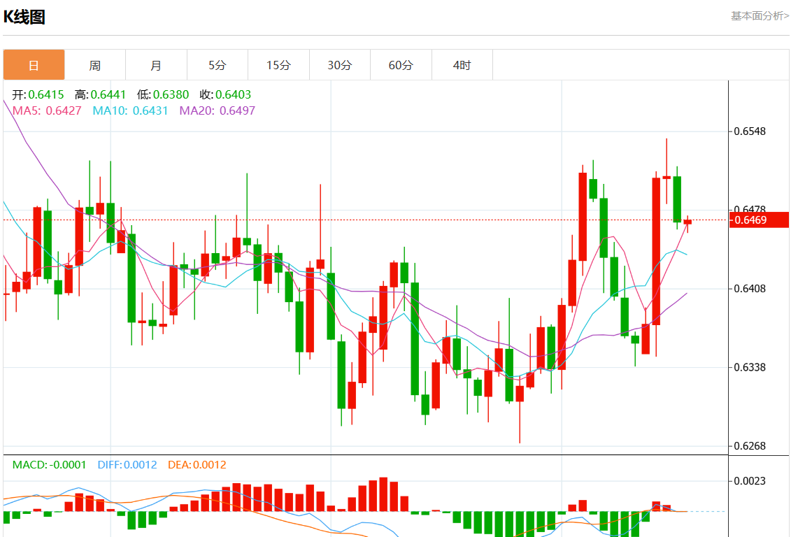 阻力位:0.6435 0.6415 0.6400
