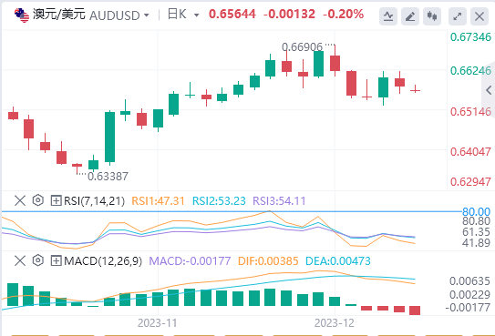 澳元/美元周五下跌0.45%。在周四上涨0.82%后,澳元在周五交易日收于0.65725美元。澳元在跌至0.65579美元的低点之前,曾升至0.66195美元的高点。