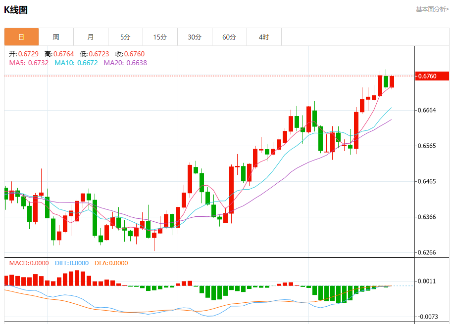 今天的预期交易区间在0.6720支撑和0.6800阻力之间