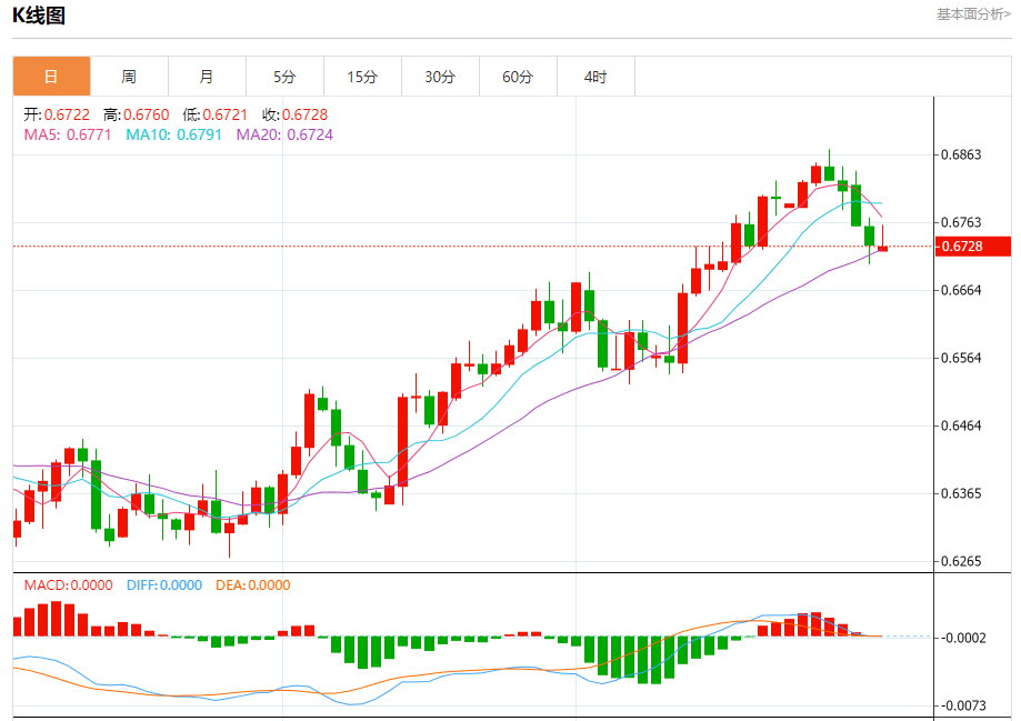 今天的预期交易区间在0.6680支撑和0.6780阻力之间