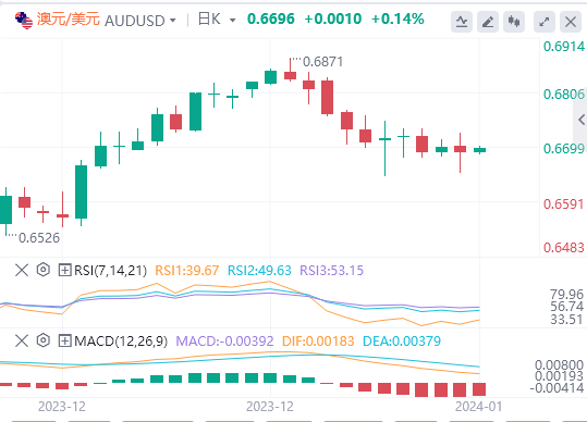 澳元/美元抛售压力的持续,可能推动澳元/美元跌至2024年低点0.6640(1月5日),然后触及200日均线0.6581。接下来是2023年12月低点0.6525,然后是短暂的100日均线0.6504。如果多头重占主导,目标将转移到2023年12月高点0.6871(12月28日),这将出现在2,然后是2023年7月高点0.6894(7月14日)和6月高点0.6899(6月16日)。如果澳元/美元突破这一区间,下一个需要关注的将是心理价位0.7000。