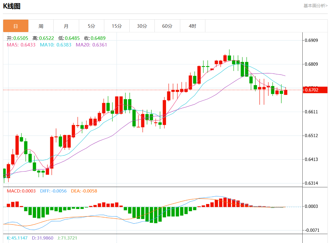 阻力位:0.6685 0.6665 0.6650