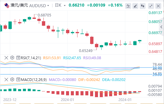 澳元/美元周一上涨0.56%。澳元扭转了上周五0.17%的跌幅,收于0.66104美元。澳元跌至0.65695美元的低点,然后升至0.66157美元的高点。