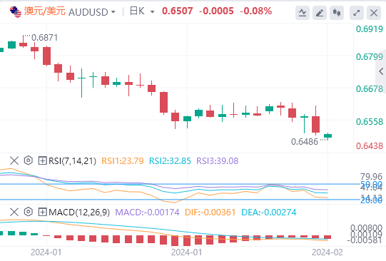 澳元/美元周一交投于0.6490附近,位于0.6500的直接心理关口下方,此前主要水平为0.6550。突破该水平可能会支持澳元/美元测试23.6%斐波那契回撤位0.6573附近的阻力区,然后达到21日指数移动平均线(EMA)0.6598。后者与0.6600的心理水平一致。不利的一面是,0.6450水平是心理支撑位0.6400之后的关键支撑位。