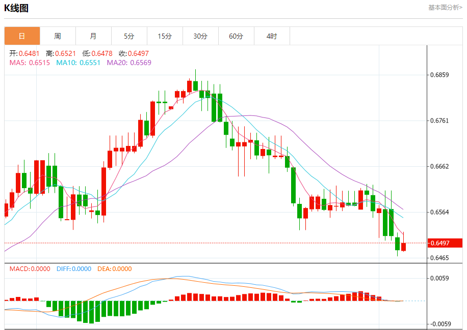 今天的预期交易范围在0.6450支撑位和0.6540阻力位之间