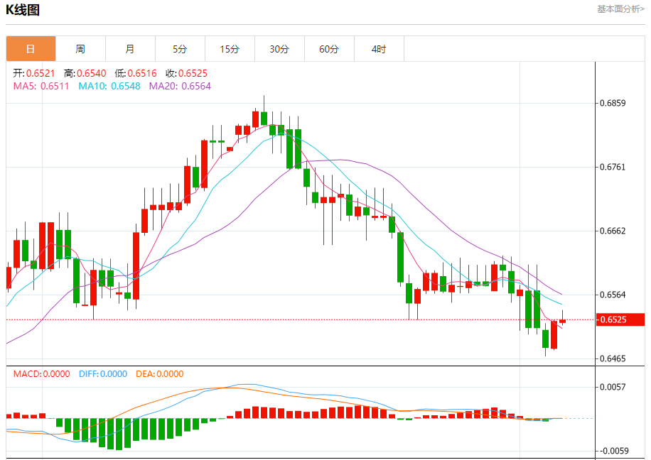 今天的预期交易范围在0.6480支撑位和0.6590阻力位之间