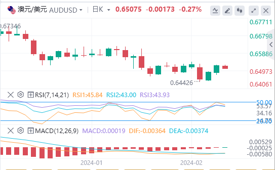 澳元/美元日线反弹的同时,市场继续重新评估美联储在6月份启动宽松周期的可能性,美元表现消极。继1月份美国通胀数据表现强劲之后,这一走势得到了进一步支持,尽管1月份美国零售销售疲软,但这一观点似乎仍未改变。