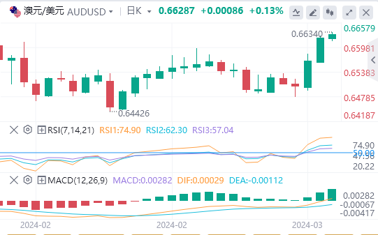 澳大利亚贸易差额(MoM)显示,2月份的顺差从之前的10,743M增加到11,027M。市场预期增至11,500M。2月份澳大利亚进口环比增长1.3%,高于前值的4.8%。月度出口增长1.6%,超过前期1.5%的升幅。澳大利亚国内生产总值(GDP)在2023年第四季度环比增长0.2%,略低于市场预期的0.3%不变。GDP(同比)增长1.5%,超过预期的1.4%,但低于之前的2.1%的增长。AiG工业指数1月份报告为-14.9,前值为-27.3。