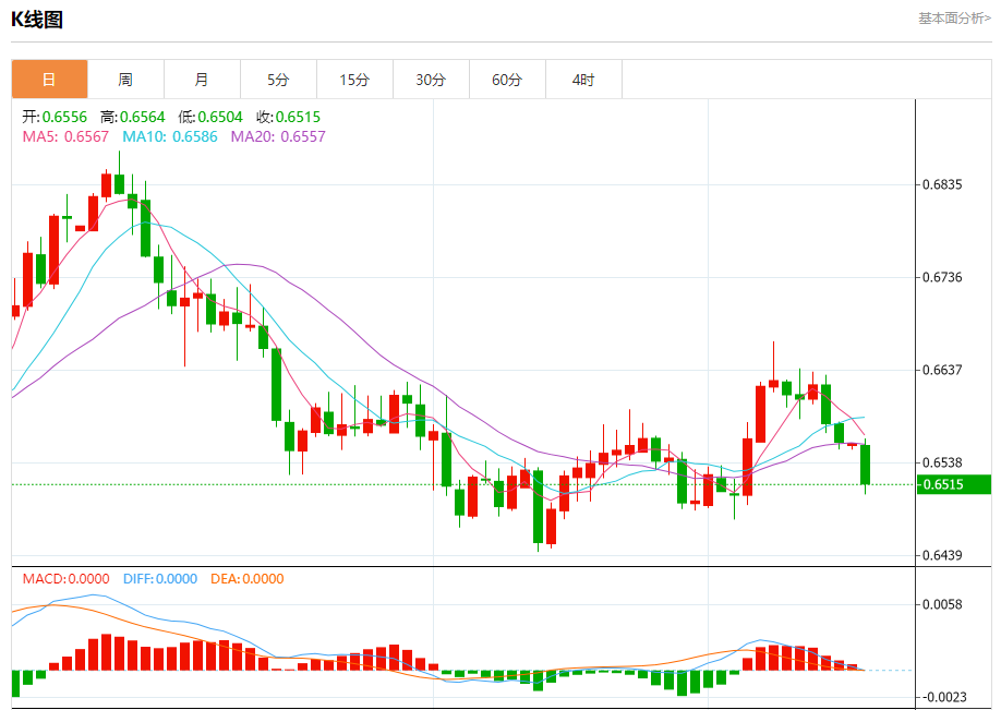 今天的预期交易范围在0.6490支撑位和0.6580阻力位之间