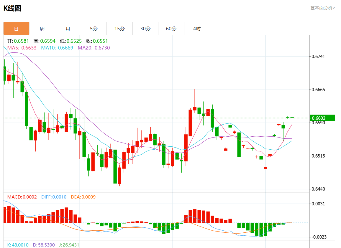 支撑位:0.6645 0.6630 0.6615