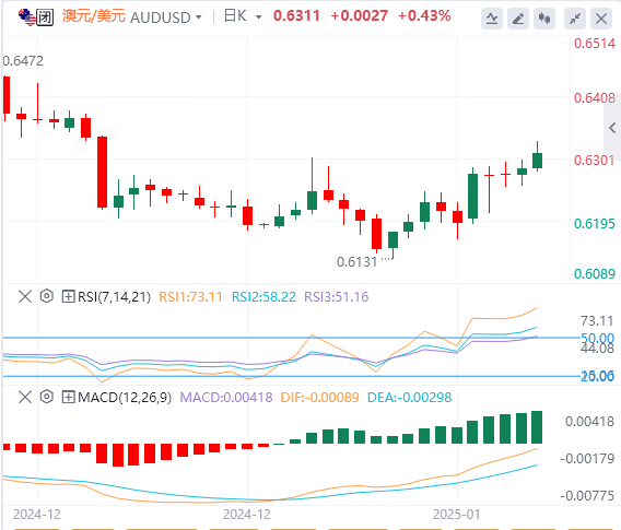 1月31日,生产者价格可能会进一步影响对RBA利率路径的情绪。经济学家预计,2024年第四季度生产者价格将同比上涨3.6%,低于2024年第三季度的3.9%。生产者价格疲软可能预示着需求减弱和通胀压力减轻。这可能会提高RBA降息押注。相反,生产者价格上涨可能表明通胀压力上升,从而推动澳元需求。