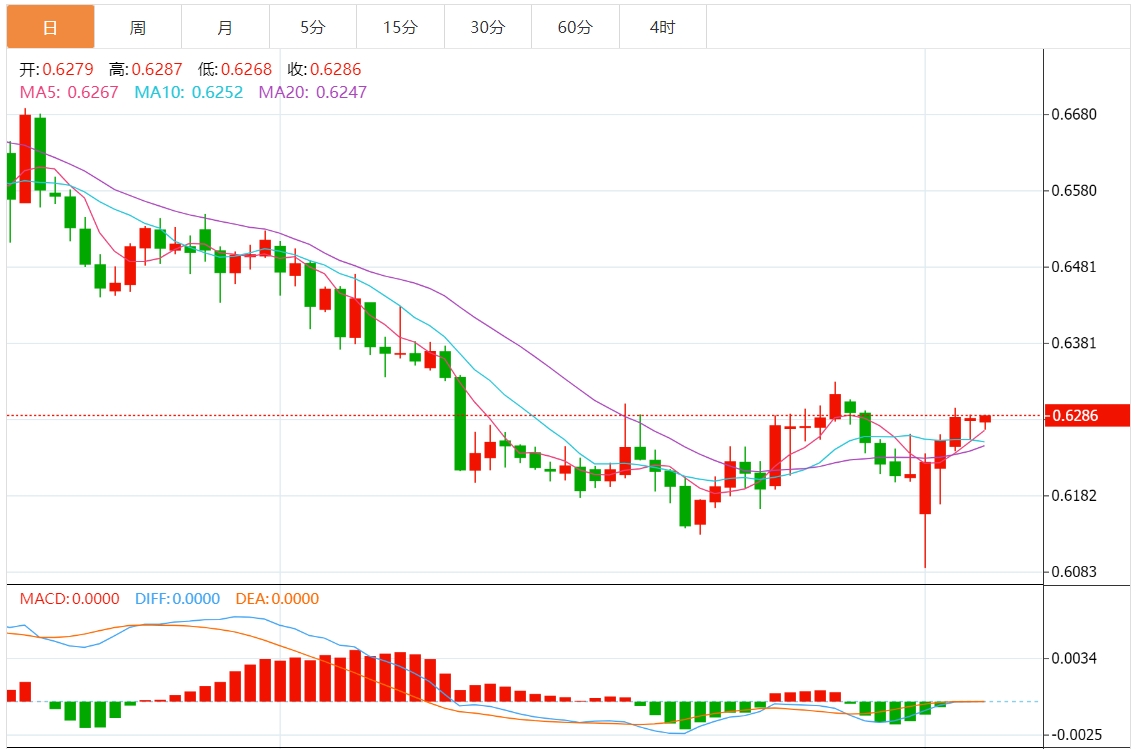 技术上,该货币对周四跌至0.6280,此前突破了约0.6230的20日简单移动平均线。 相对强弱指数(RSI)为55,仍处于积极区域但在下降。 同时,移动平均趋同背离(MACD)柱状图显示绿色柱体减少,暗示看涨动能减弱。