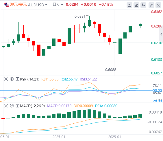 从好的方面来看,澳元/美元或会测试1月24日触及的七周高点0.6330。