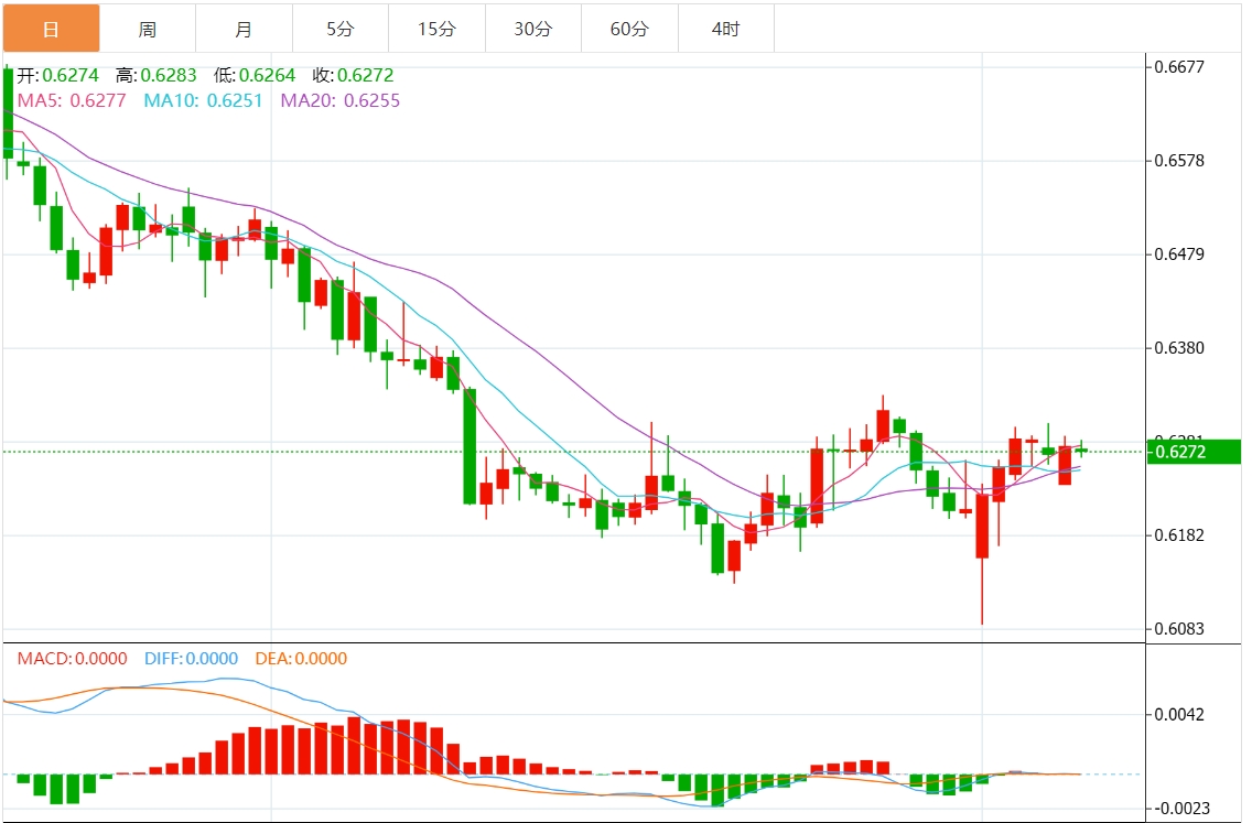 技术上,技术指标显示短期复苏前景乐观:该货币对突破了约0.6230的20日简单移动均线(SMA),建立了一个关键支撑位。相对强弱指数(RSI)为58,表明看涨动能增强,而MACD直方图显示平坦的绿色条,反映出上行压力逐渐增加。