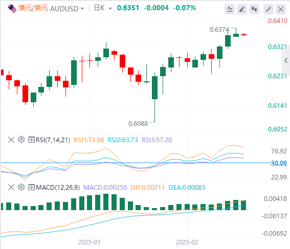 澳元/美元在宣布之前达到0.6373的峰值(自12月中旬以来最高水平),在美元(USD)全面疲软情况下,该货币对技术上呈看涨立场,因金融市场理解美国总统唐纳德·特朗普的财政措施将美联储(Fed)推向鹰派道路后美元处于劣势。“事实上,美国关税对澳大利亚经济可能意味着什么的不确定性可能会成为澳洲联储公告的一部分。从技术上讲,澳元/美元有空间扩大向0.6470区域前进,该货币对在该区域有多个月来的多个盘中高点和低点。要达到此高度,首先需突破上述盘中高点即直接阻力位,接着是临时阻力位0.6430。鸽派结果可能推动该货币对突破0.6300门槛,额外下滑将暴露于0.6230价格区域。
