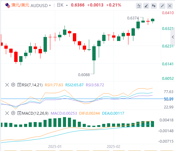 澳元/美元周三徘徊在0.6360附近,在上升通道模式内交易,表明市场偏向看涨。14天相对强弱指数(RSI)保持在50以上,加强了积极的前景。