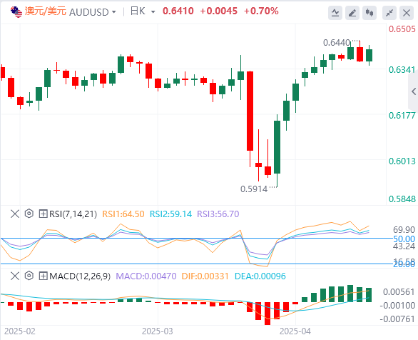 特朗普对贸易政策的迅速变化削弱了投资者的信任,并削弱了对美国经济的信心。这,加上市场押注美联储将在6月恢复降息周期,并在今年年底前至少降息三次,限制了美元多头的激进押注。交易员们现在期待美国PMI的发布,这可能会影响美元,此外还有影响力的FOMC成员的讲话和与贸易相关的发展。尽管如此,基本面背景表明,澳元/美元货币对的最小阻力路径是向上的。