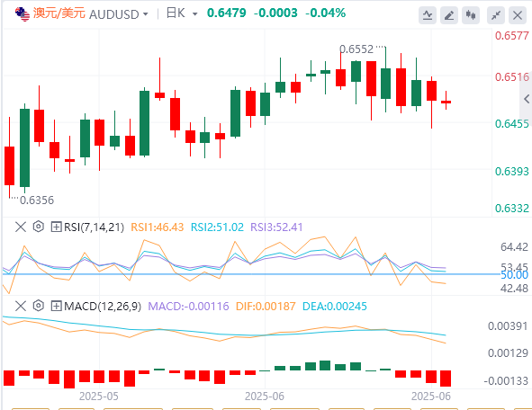 澳元/美元周五交易于0.6480附近。日线图的技术分析表明,随着该货币对试图反弹至上升通道模式,看涨偏见将恢复。此外,14天相对强弱指数(RSI)略高于50关口,表明看涨偏见加强。然而,该货币对位于9天指数移动平均线(EMA)下方,表明短期价格势头仍然较弱。
