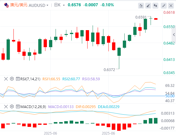 从好的方面来看,澳元/美元或会反弹至7月1日创下的八个月新高0.6590,随后是上升通道的上边界0.6650附近。
