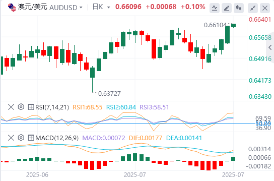 从好的方面来看,澳元/美元货币对可能会瞄准0.6650的心理水平,然后是上升通道的上限0.6680附近。
