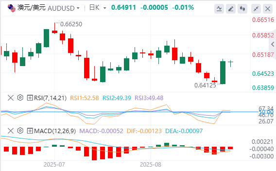 下行方面,澳元/美元货币对可能会在0.6477的9日均线处找到直接支撑。跌破该水平将削弱短期价格动能,并给该货币对带来下行压力,目标是8月21日创下的两个月低点0.6414,随后是6月23日触及的三个月低点0.6372。