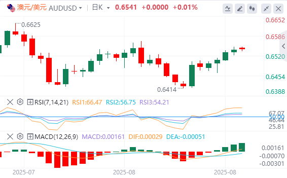 从好的方面来看,澳元/日元货币对可能会瞄准8月14日触及的五周高点0.6568,随后是7月24日创下的九个月高点0.6625。
