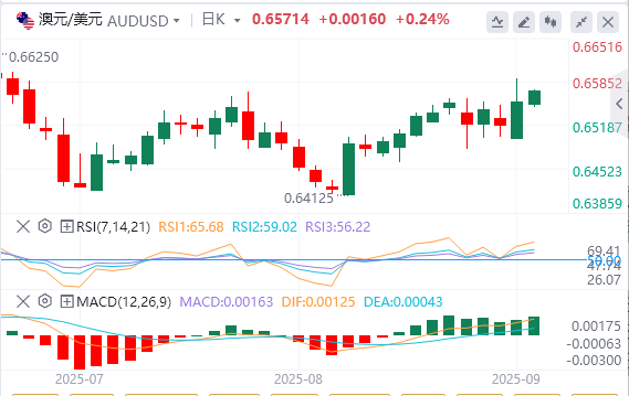 上周稳健的7月贸易顺差和第二季度GDP数据缓解了澳大利亚储备银行(RBA)进一步降息的预期,澳元也受到支撑。掉期目前认为澳洲联储在9月份维持政策不变的可能性接近90%,而11月降息25个基点的可能性已从100%降至80%。