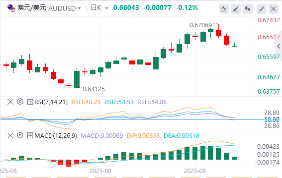 从好的方面来看,澳元/美元货币对的目标可能是0.6623的9日均线。突破该水平将改善短期价格动能,并支持该货币对接近9月17日创下的11个月高点0.6707,随后是上升通道的上限0.6720附近。