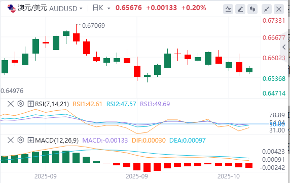 周五,澳元/美元汇率交投于0.6570附近。每日时间框架的技术分析表明,该货币对正在反弹至上升通道,表明看涨偏见复苏。然而,14天相对强弱指数(RSI)仍低于50水平,表明看跌倾向正在发挥作用。