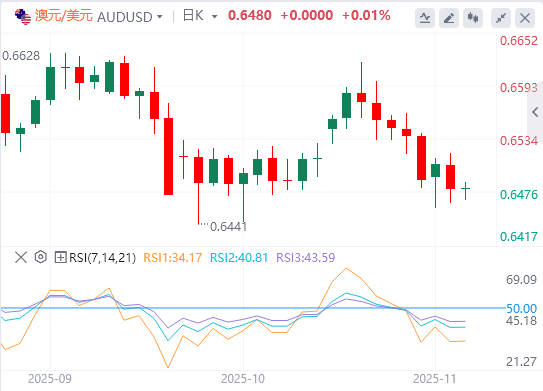 周五澳元/美元交投于0.6470附近。日线图的技术分析显示,该货币对在矩形形态内盘整,横盘整理。它仍低于九日指数移动平均线(EMA),表明短期势头较弱。