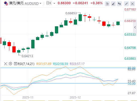 澳元/美元汇对徘徊在九日均线0.6620附近。持续突破该水平将增强短期动能,为3个月高点0.6685和0.6707打开道路,后者为2024年10月以来最高点。下行方面,若果断跌破上升通道,可能加剧下行压力,暴露8月21日标记的6个月低点0.6414附近。