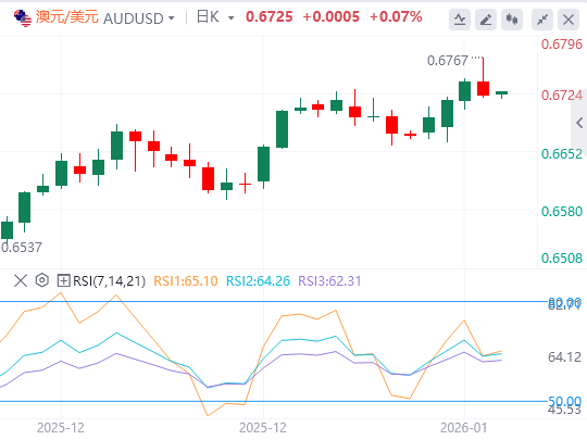 澳元/美元周四交投于0.6720附近。日线图显示,该货币对仍处于上升通道形态内,表明整体多头偏向得以维持。14日相对强弱指数(RSI)位于64.42,也显示多头动能。
