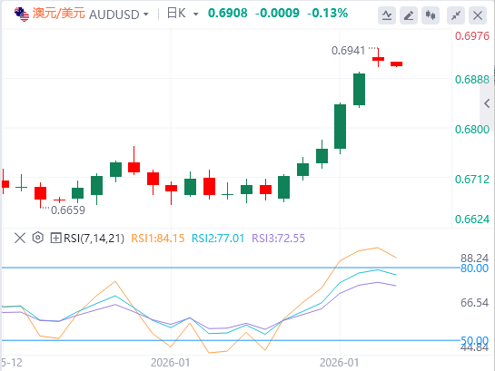 澳元兑美元看涨势头目前势不可挡。然而,随着货币对进一步进入超买区,技术性调整的观点预计将逐渐获得关注。
