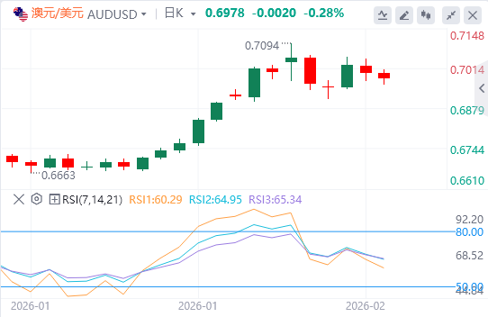 澳元/美元对周四交易价格约在0.7000附近。日线图分析显示该货币对仍处于上升通道形态内,显示持续的多头偏向。14天相对强弱指数(RSI)为69;通常表明多头动能。